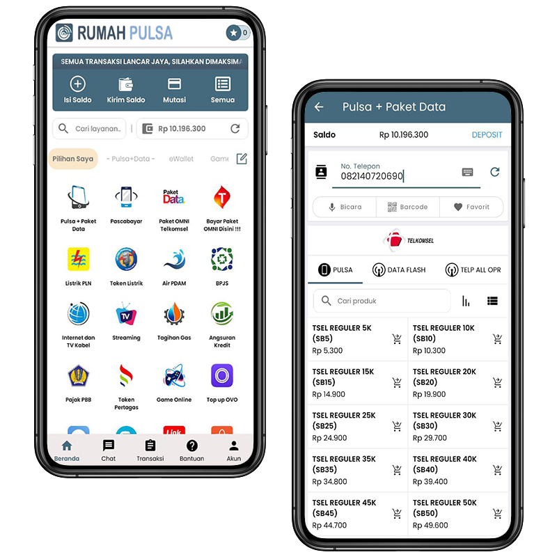 Rumah Pulsa menyediakan (menggunakan) fasilitas “Deposit” untuk memudahkan proses transaksi Anda. Pelajari lebih lanjut mengenai penggunaan deposit di Rumah Pulsa melalui Customer Support kami.